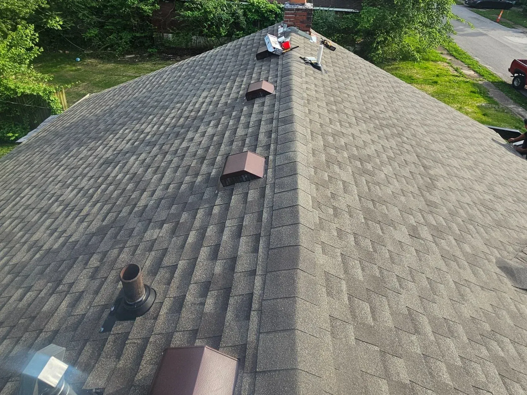 After the roof is complete, you will notice that water runs cleanly into gutters without backing up under shingles, that attic temperatures stay more consistent, and that ceiling stains stop spreading. Liberation Contracting & Roofing coordinates material delivery, handles all tearoff and disposal, and completes final cleanup so you are not left managing debris or dealing with multiple suppliers.